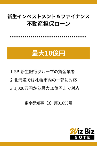 | 担保 | 法人、代表者またはその親族が所有する不動産 |