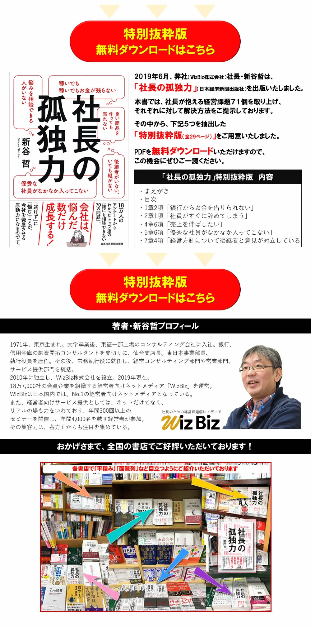 1971年東京生まれ。大学卒業後、東証一部上場のコンサルティング会社に入社。銀行、信用金庫の融資コンサルタントを皮切りに、仙台支店長、東日本事業部長、執行役員を歴任。その後、常務執行役に就任し、経営コンサルティング部門や営業部門、サービス提供部門を統括。2010年に独立しWizBiz株式会社を設立。現在、経営者向けネットメディア「WizBiz」を運営。国内では経営者の会員登録数でNo.1のメディアとなっている。また、経営者向けサービス提供としては、ネットだけでなく、リアルの場も力をいれており、年500回以上のセミナーを開催し、4000名を越す経営者が参加。18万人の社長アンケートから1000個の悩みを回収。