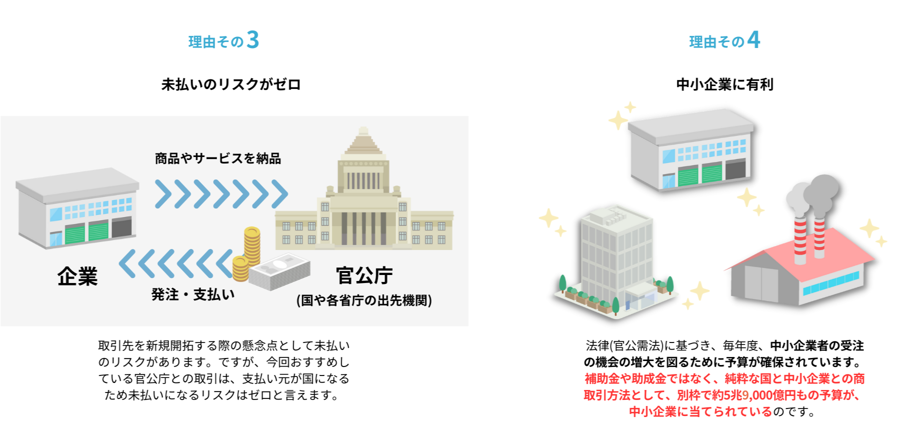 なぜなら、新たな売上がうまれるだけではなく、公的機関との取引
