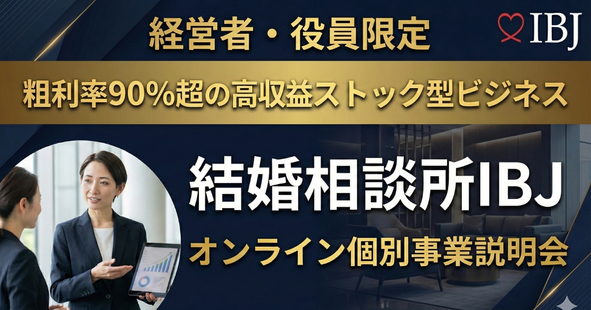 粗利率90%超のストック型ビジネス『結婚相談所IBJ』オンライン個別事業説明会