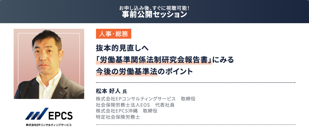 その中でも特にオススメしたいのが、抜本的見直しが現実的になりつつある「労働基準法」の今後のポイントに関する講演イベントです。