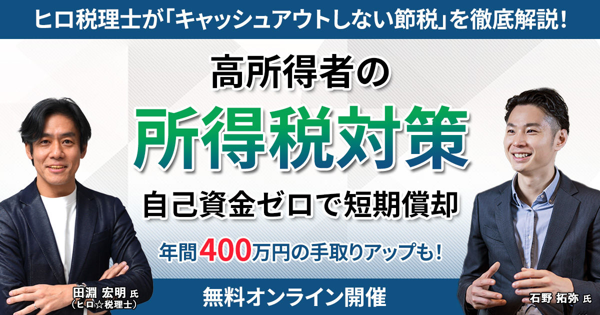 本セミナーでは、そんな「節税対策」をYouTuber「ヒロ税理士」として有名な田淵宏明氏に解説いただきます!