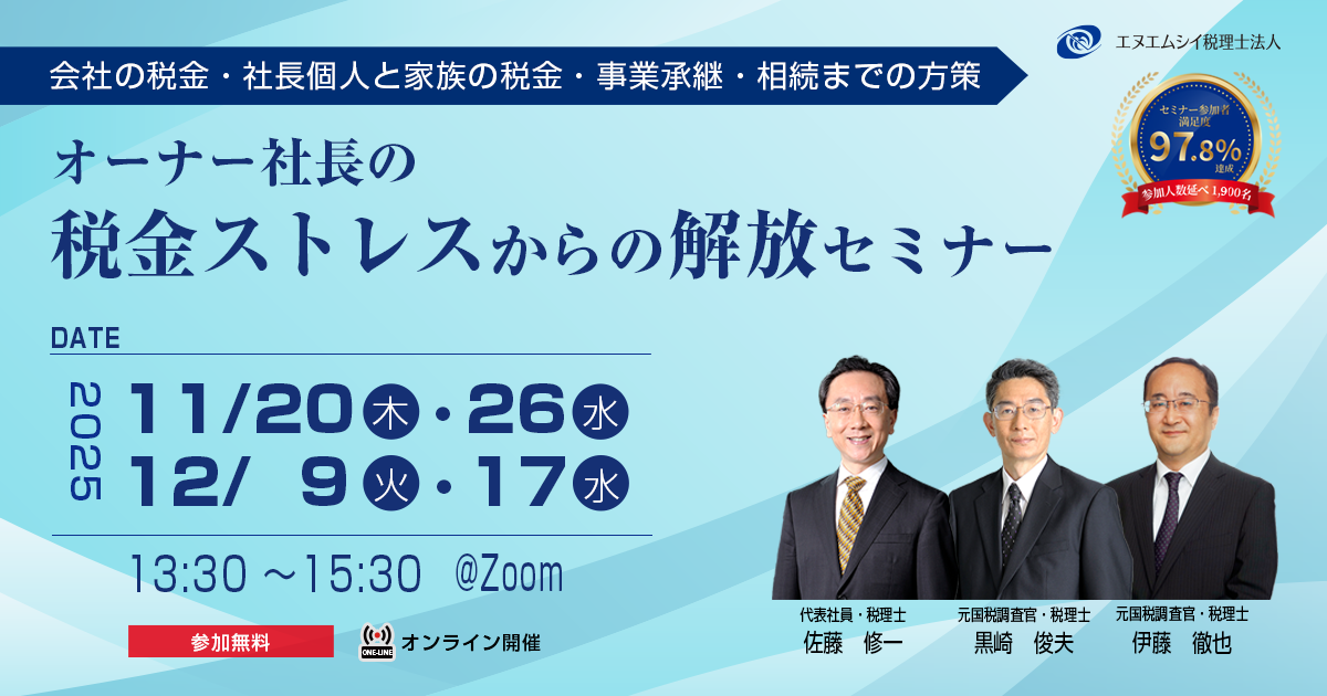 オーナー社長の「税金ストレスからの解放」セミナー NEW