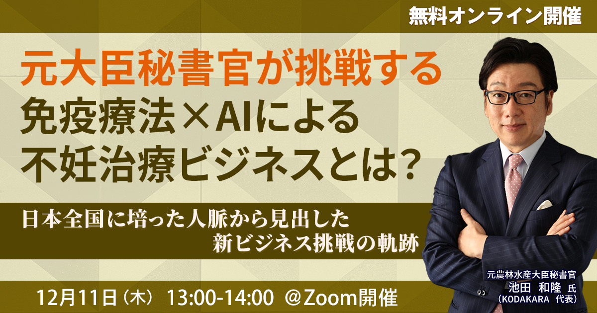 池田氏が挑戦する新ビジネスとは、最新の免疫療法とAIを活用した「不妊治療ビジネス」です。