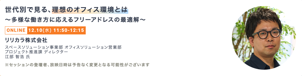 12/10(水)11:50-12:15 「世代別で見る、理想のオフィス環境とは」