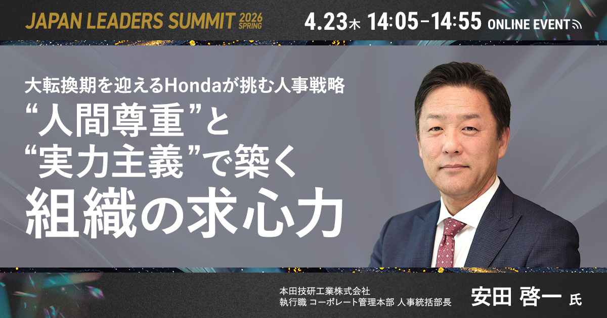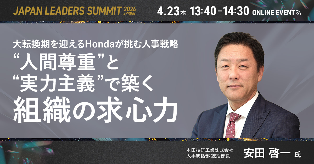 本セッションでは、本田技研工業 人事統括部長の安田 啓一 氏にご登壇いただき、Honda の「第二の創業期」における人事戦略を紐解きます。