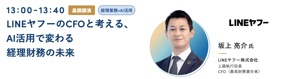 本講演では、そうしたAI時代の経理財務パーソンが抱える様々な疑問・展望について、LINEヤフーのCFOである坂上亮介氏とともに考察します。