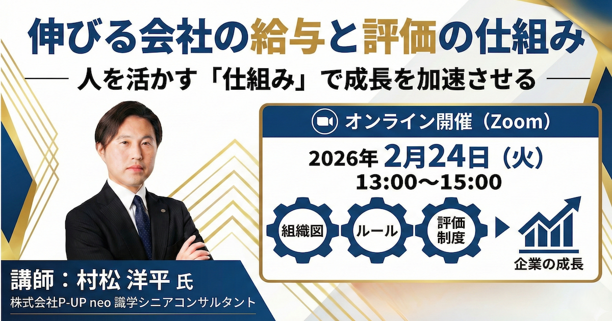 本セミナーでは、成長企業が実践している「給与と評価の仕組み」を解説します。