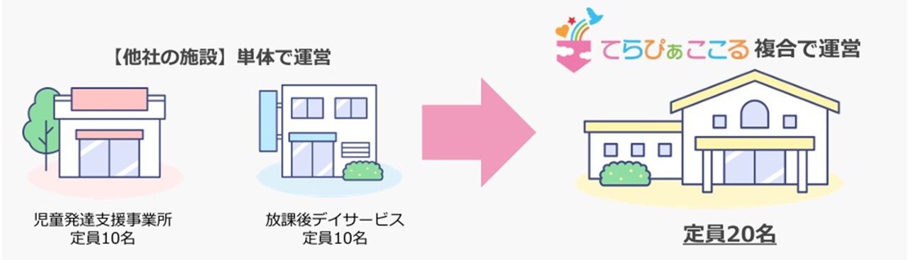 また、単体でサービス提供するよりも経営効率が良く、利用定員も通常の2倍となることから、非常に高収益な事業モデルを構築。