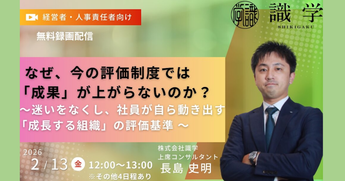 本セミナーでは、「業績(成果)」と「人材育成(成長)」を両立させる評価制度の鉄則を解説いたします!