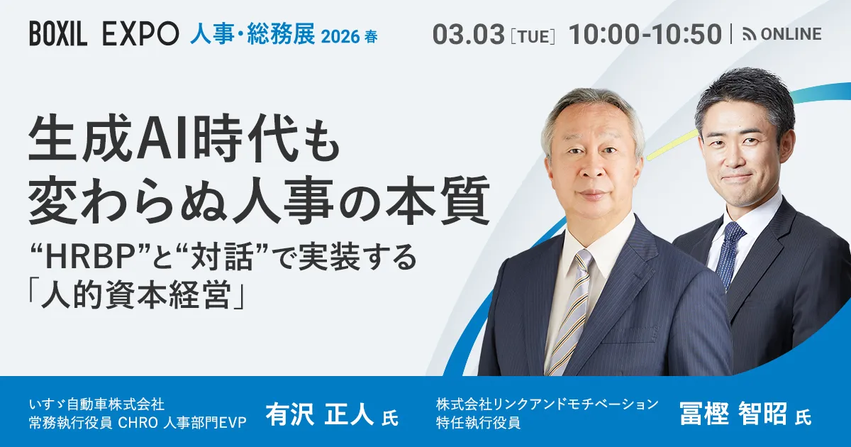 3月3日(火)〜6日(金)、経営者や、人事・総務分野で働く方々を対象に、オンラインイベント「BOXIL EXPO 人事・総務展 2026 春」を開催します。