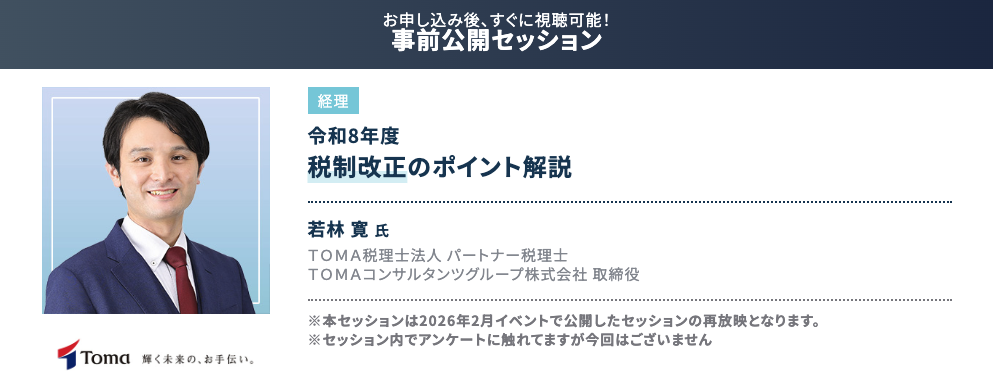 ※1回のご登録だけ「税制改正のポイント解説セミナー」を含め、全セッションを視聴いただけます。