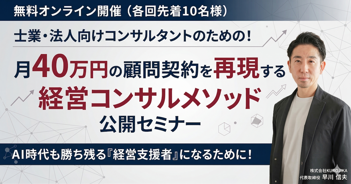 月40万円の顧問契約を再現する「経営コンサルメソッド」公開セミナー NEW