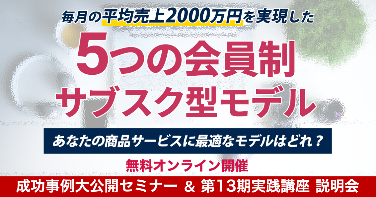 「5つの会員制サブスク型モデル」成功事例大公開セミナー&説明会 NEW