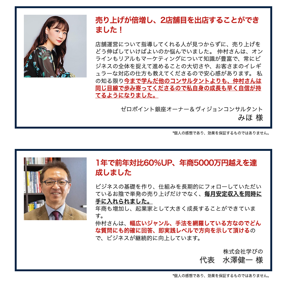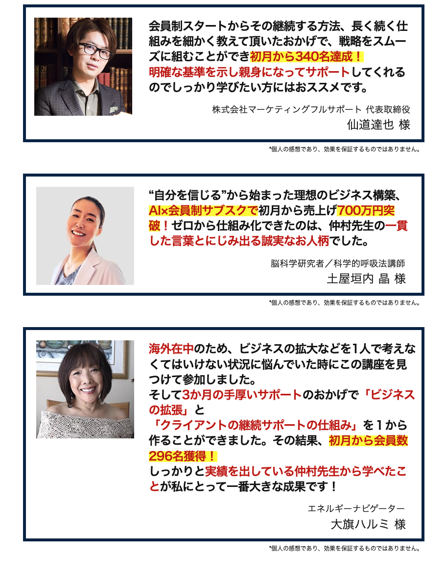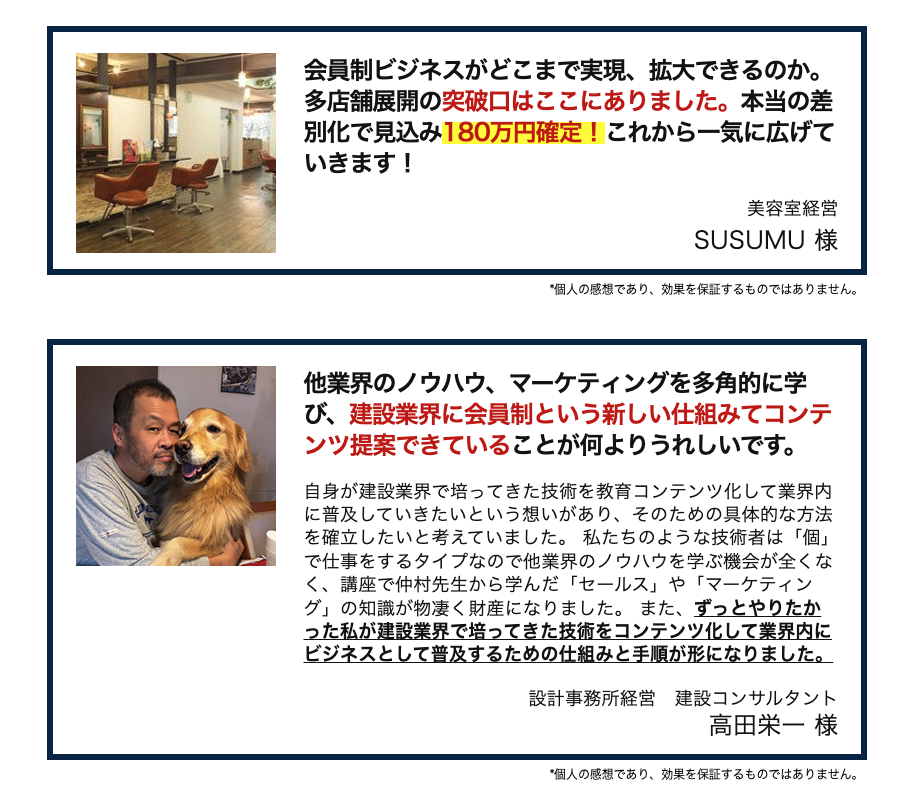 ありとあらゆる業界でこんな実績が出ています!※コンサル、脳科学、薬剤師、鍼灸師、トレーナー、美容院、建設、飲食店、農業、他多数