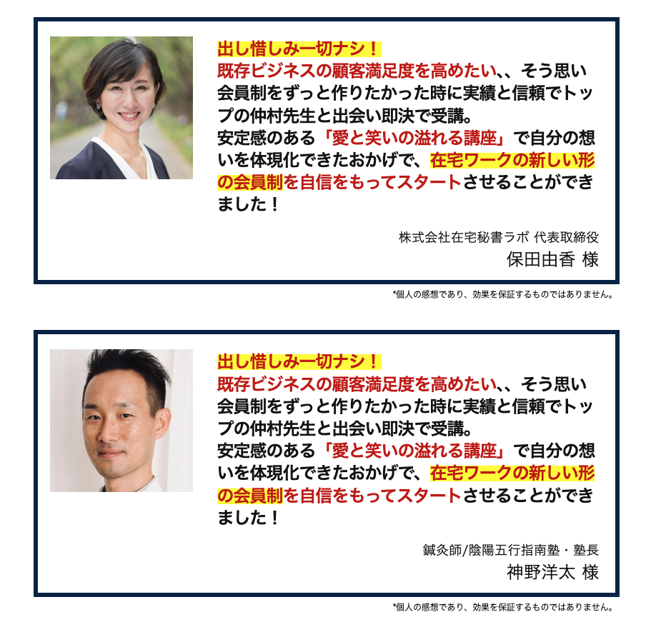 間違った型で始めるとビジネスの継続が困難になりますので、必ずセミナーであなたのビジネスに合った型を確認してください。